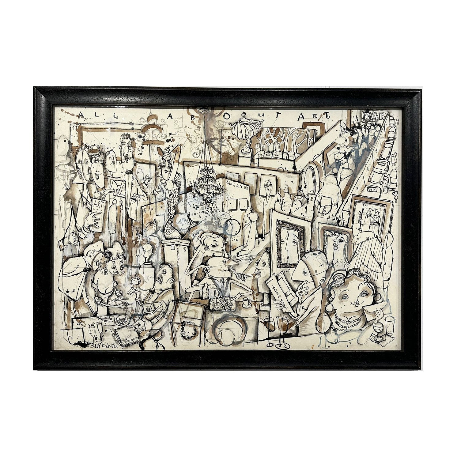 Geweldige tekening op papier van Guy Olivier, inclusief lijst.