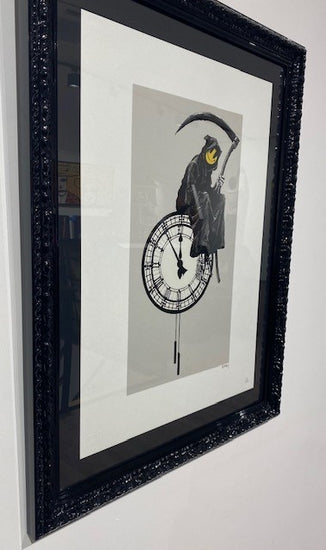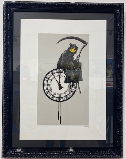 Banksy Grim Reaper compenseert de angst die gepaard gaat met de skeletachtige Grim Reaper door zijn gezicht te bedekken met een ''Acid House Smiley''. Het is een van de vroegste en meest herkenbare werken van de kunstenaar, oorspronkelijk geschilderd in Old Street, Oost-Londen.