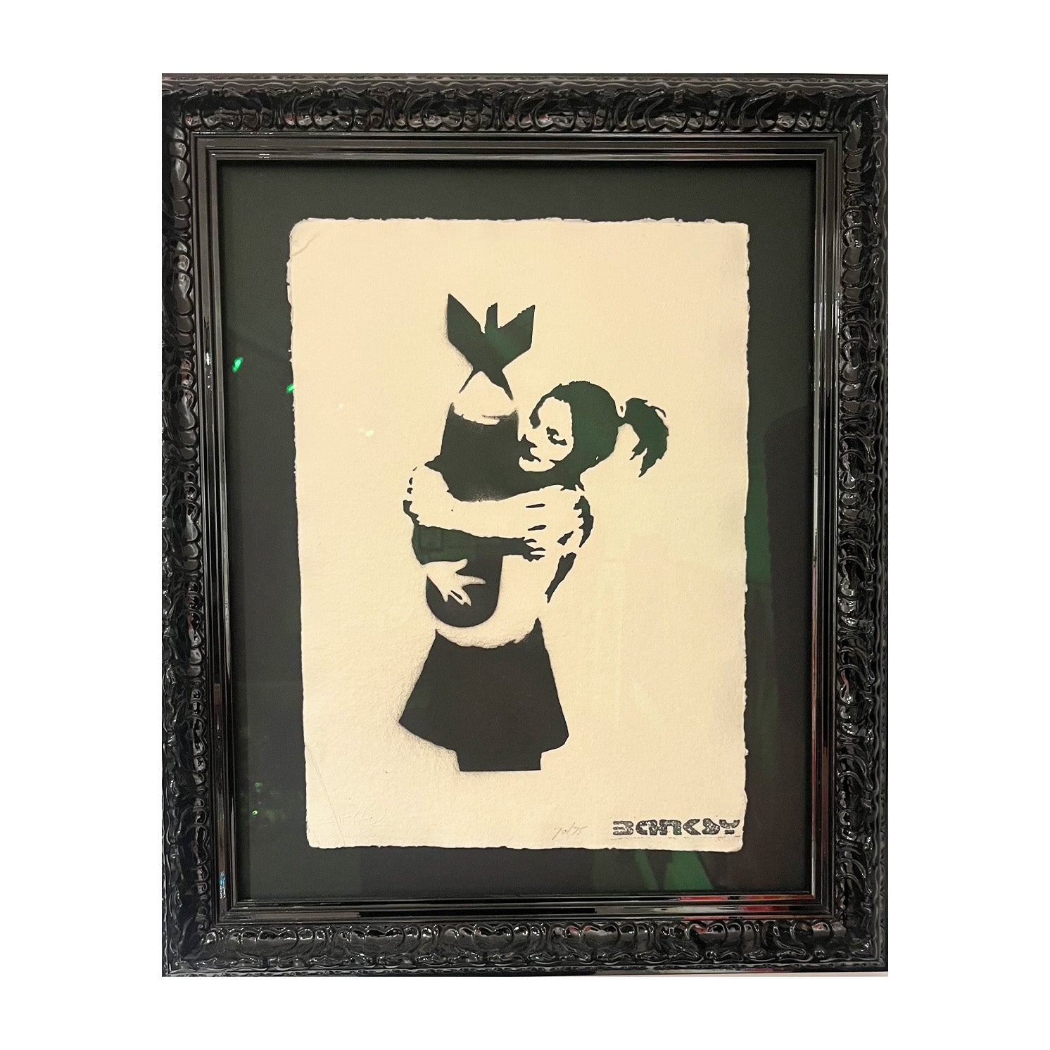 After Banksy - Bombgirl inclusief hoogglans barok lijst met art glas.