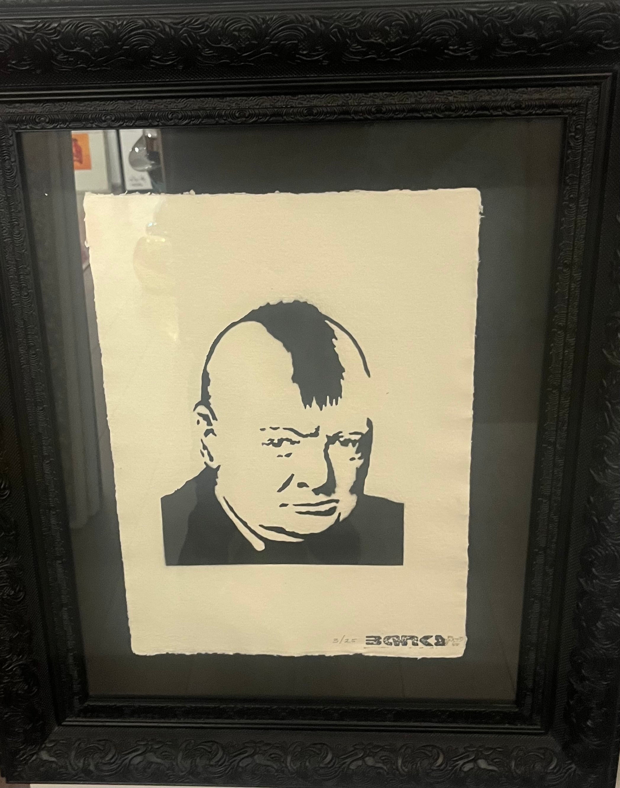 Dit is een kunstwerk op handgeschept papier geïnspireerd op Bansky, waarbij originele Banksy TAC's zijn gebruikt. Banksy's werk karakteriseert zich door zijn pakkende en humoristische beelden, in combinatie met slogans.