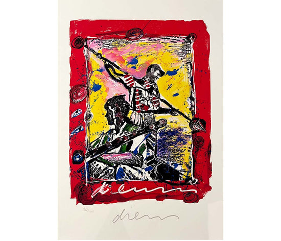 Zeefdruk op papier inclusief Passe- Partout en zilveren lijst.
