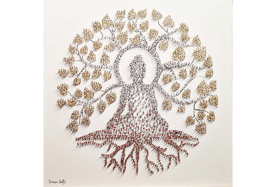 The use of mixed media creates a 3D effect making his pieces extraordinarily different. The layering of paint is striking and adds yet another dimension. His works are innovative and distinctive, encompassing a variety of materials and techniques with fresh ideas to create excitement. Original Art work with a black frame.