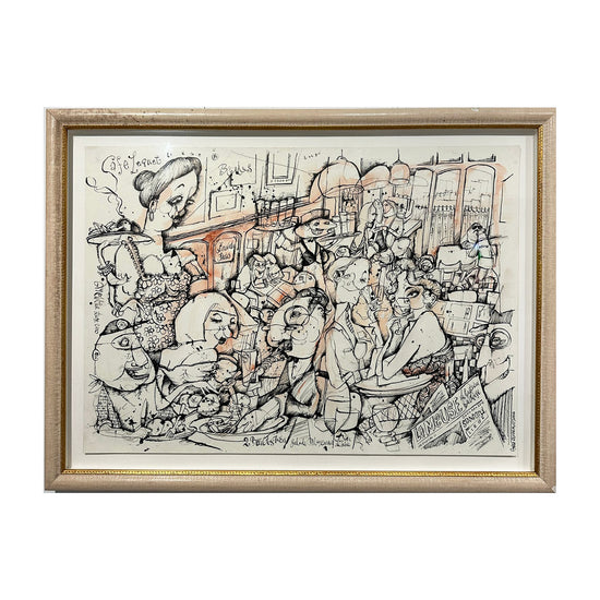 Geweldige tekening op papier van Guy Olivier, inclusief lijst.