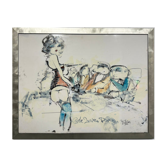Geweldige tekening op papier van Guy Olivier, inclusief lijst.