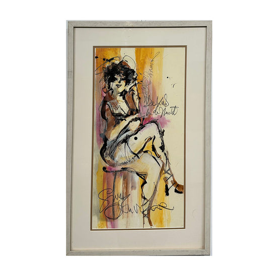 Geweldige tekening op papier van Guy Olivier, inclusief lijst.