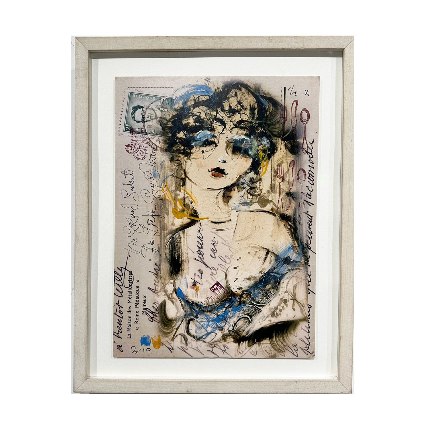 Geweldige tekening op papier van Guy Olivier, inclusief lijst.