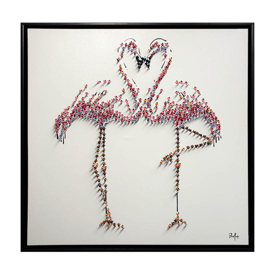 The use of mixed media creates a 3D effect making his pieces extraordinarily different. The layering of paint is striking and adds yet another dimension. His works are innovative and distinctive, encompassing a variety of materials and techniques with fresh ideas to create excitement. Original Art work with a black frame.