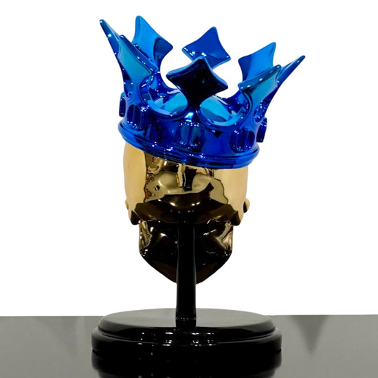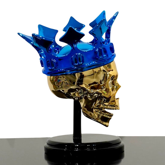 Van Apple created the Skulls on his own artistic way. Inspired by these Days Brand and Fashion Industry, and his love for colors combined in a unique serie of art sculptures. The skull is handmade of Chrome with Resin and 30 cm high.