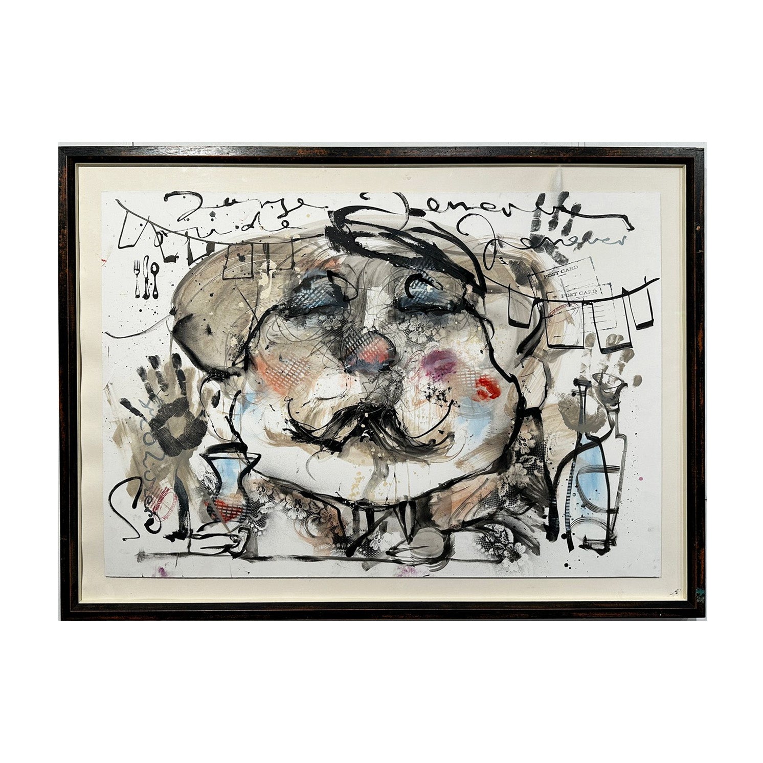 Geweldige tekening op papier van Guy Olivier, inclusief lijst.