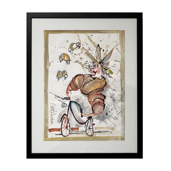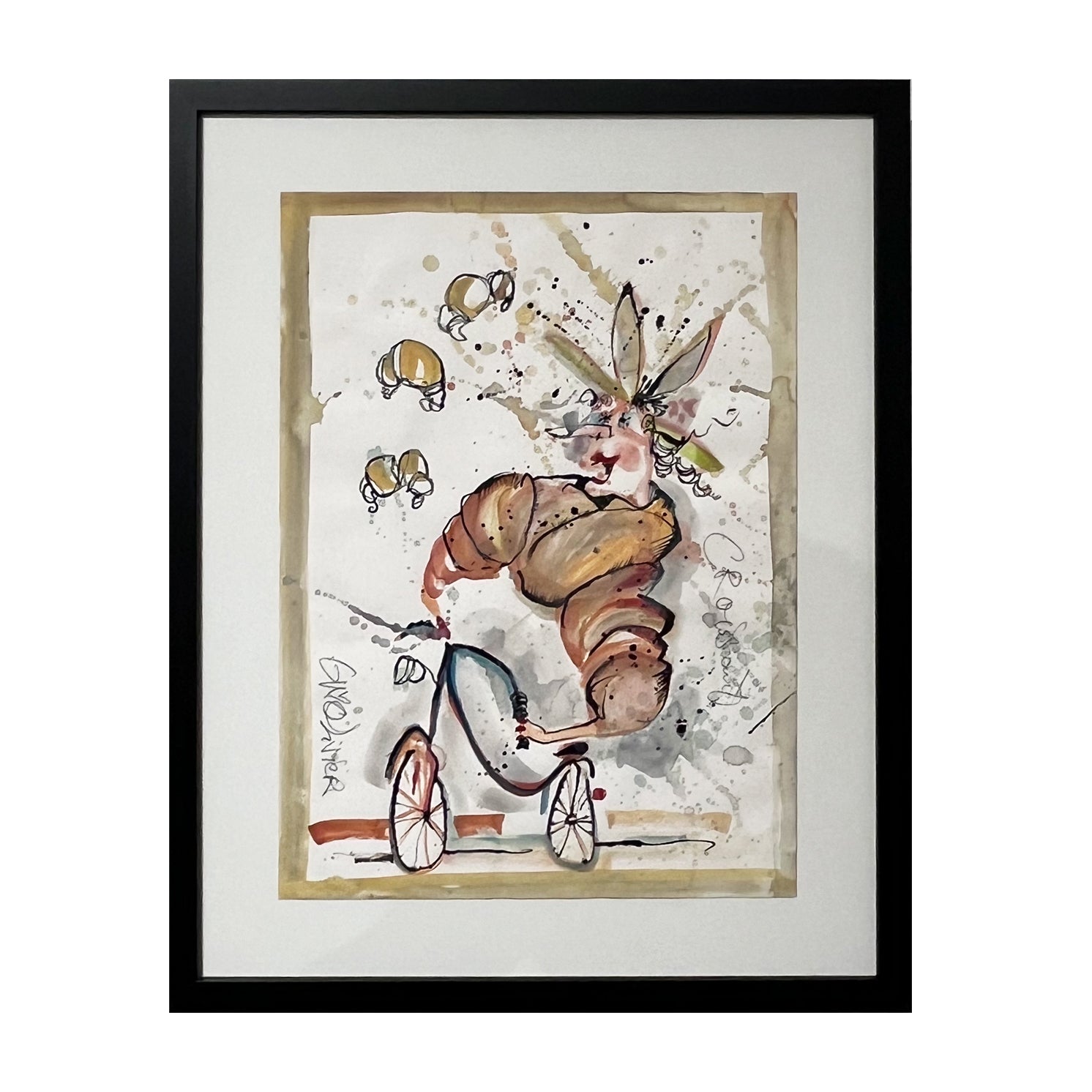Geweldige tekening op papier van Guy Olivier, inclusief museumglas in zwarte lijst.