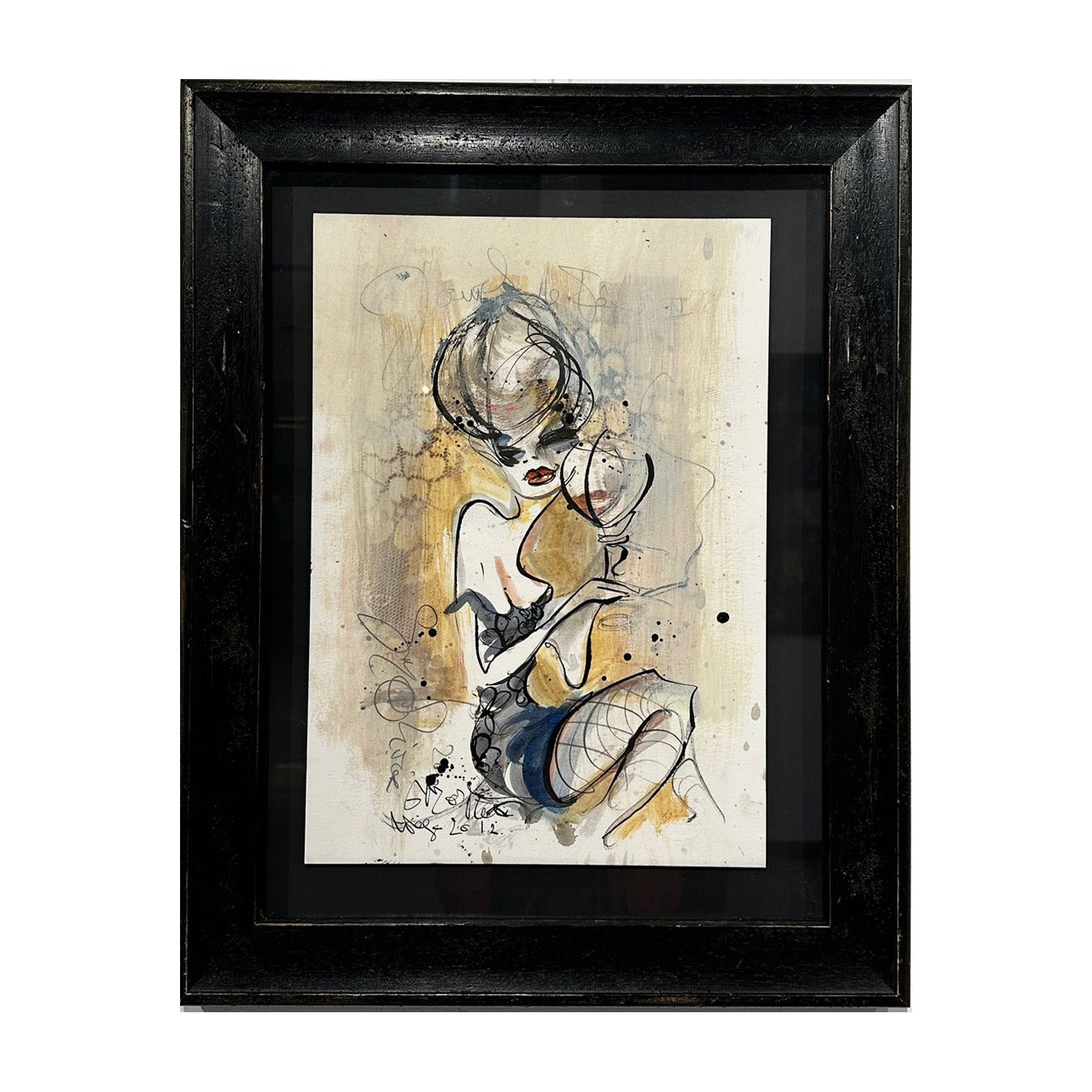 Geweldige tekening op papier van Guy Olivier, inclusief lijst.