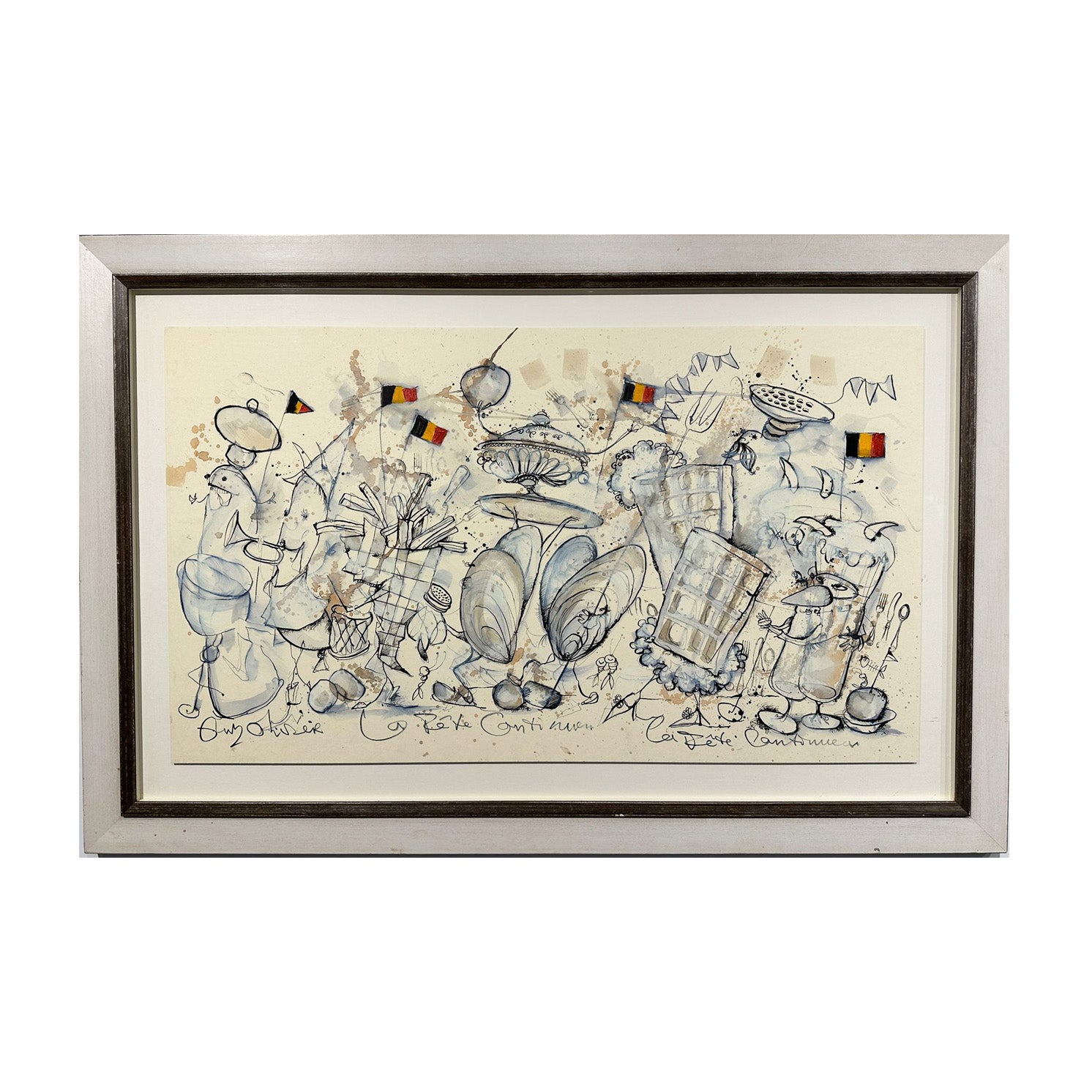 Geweldige tekening op papier van Guy Olivier, inclusief lijst.