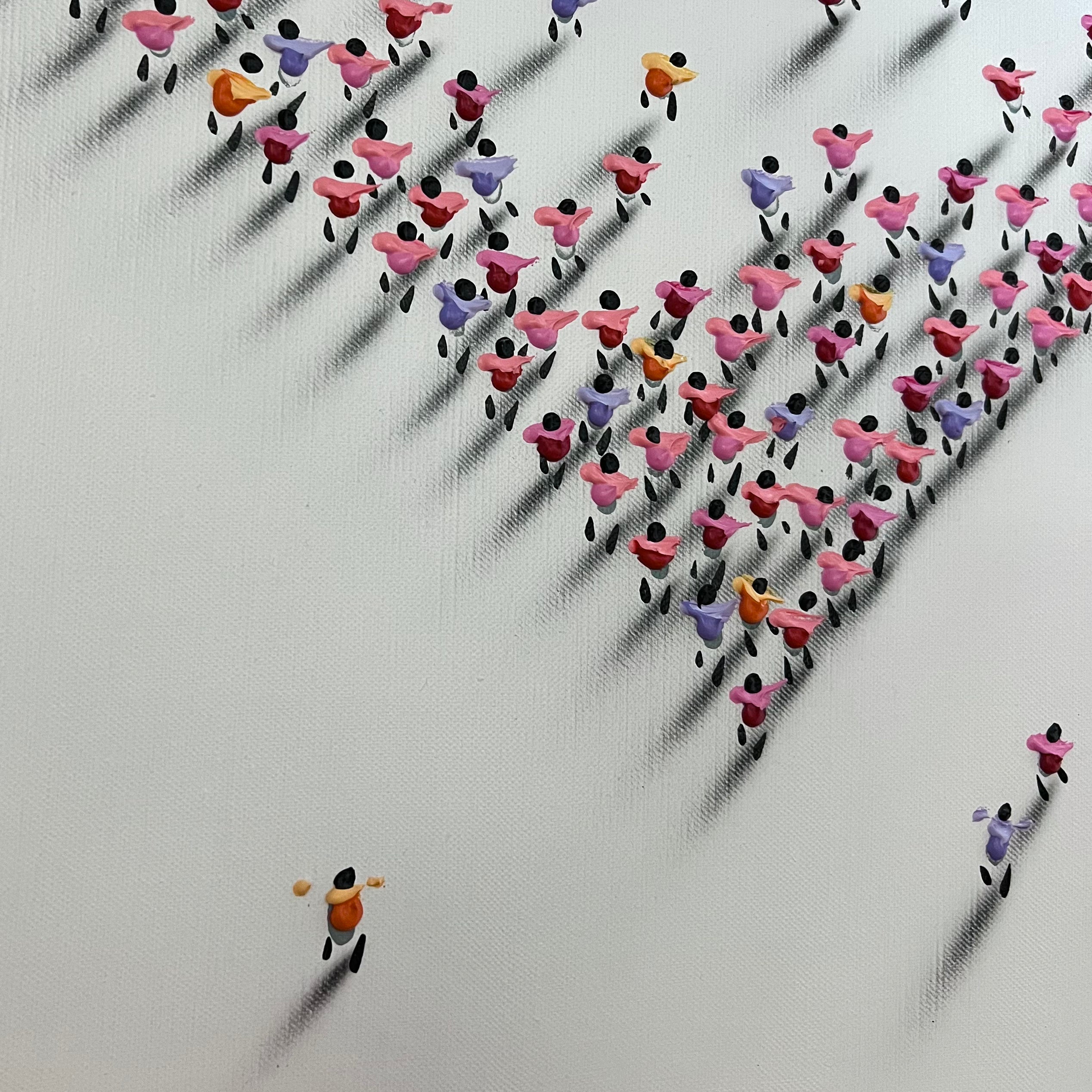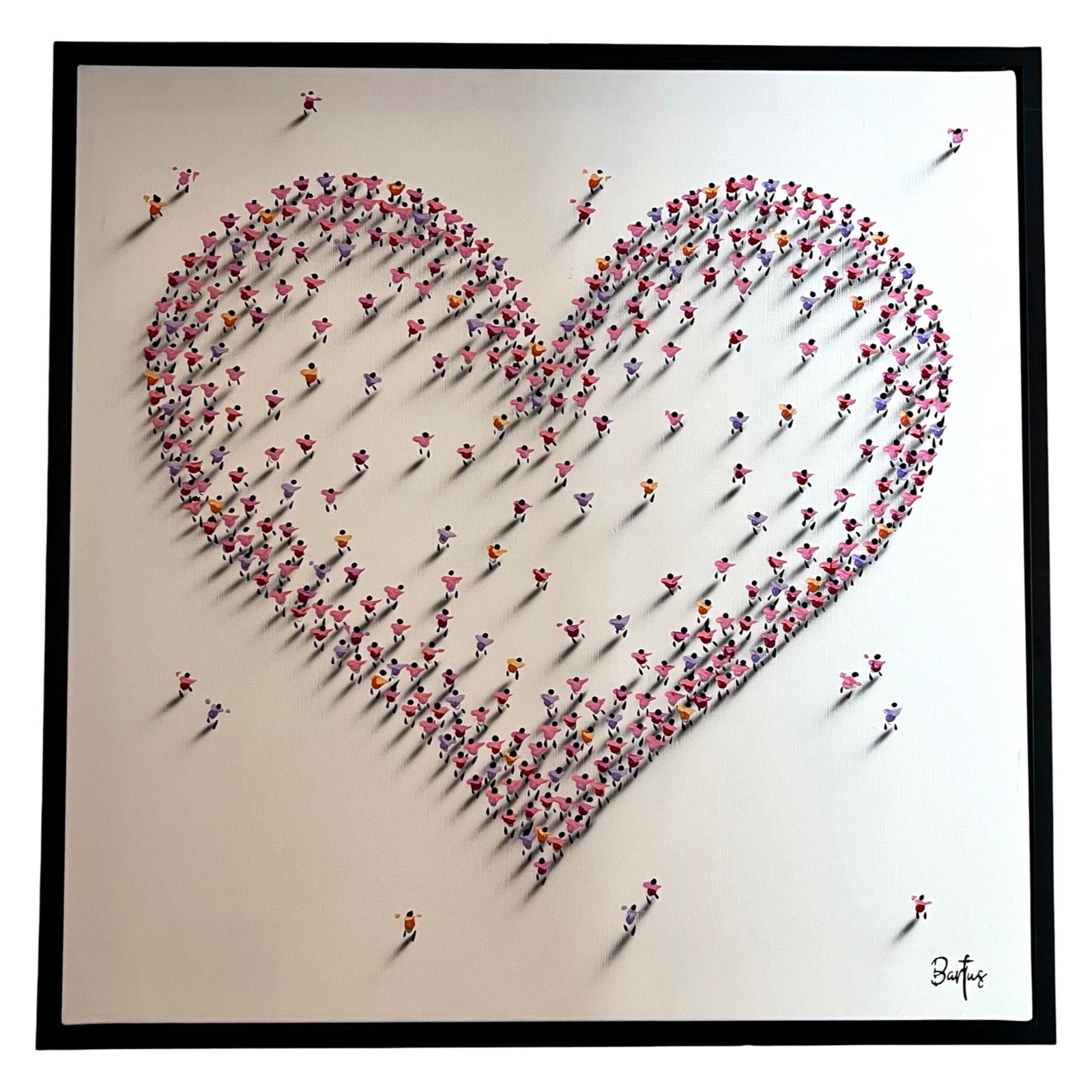The use of mixed media creates a 3D effect making his pieces extraordinarily different. The layering of paint is striking and adds yet another dimension. His works are innovative and distinctive, encompassing a variety of materials and techniques with fresh ideas to create excitement. Original Art work with a black frame.