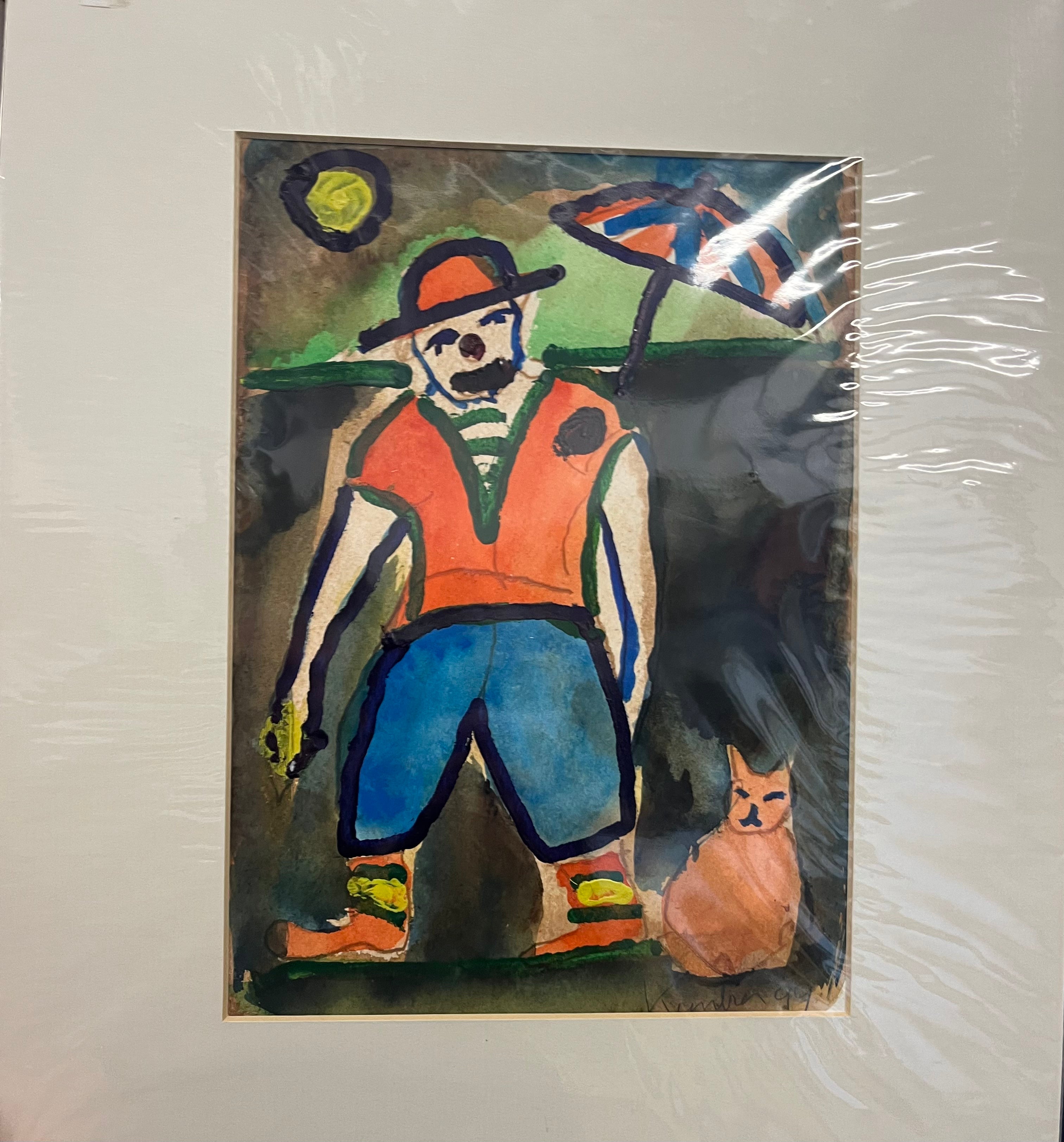 Origineel verf op papier inclusief passe-partout van Jacob Kanbier