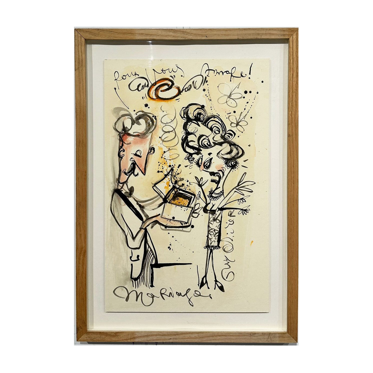 Geweldige tekening op papier van Guy Olivier, inclusief lijst.