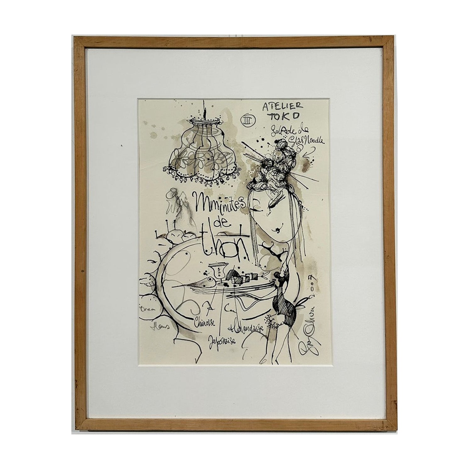 Geweldige tekening op papier van Guy Olivier, inclusief lijst.