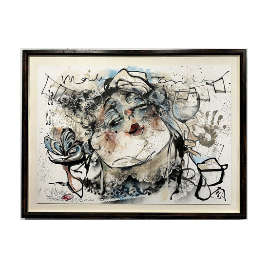 Geweldige tekening op papier van Guy Olivier, inclusief lijst.