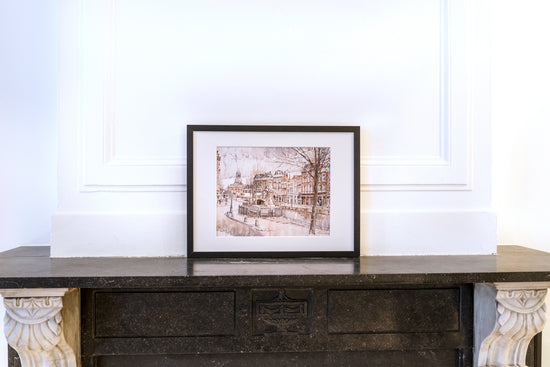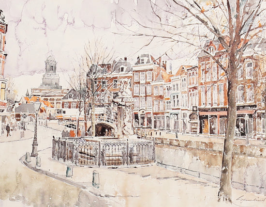Litho van de Nieuwe Rijn in Leiden