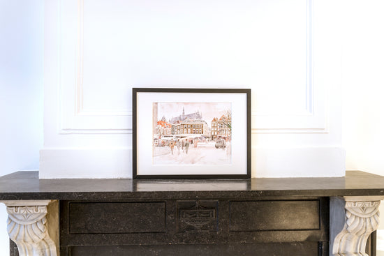 Litho van de T Gangetje/Nieuwe Rijn in Leiden