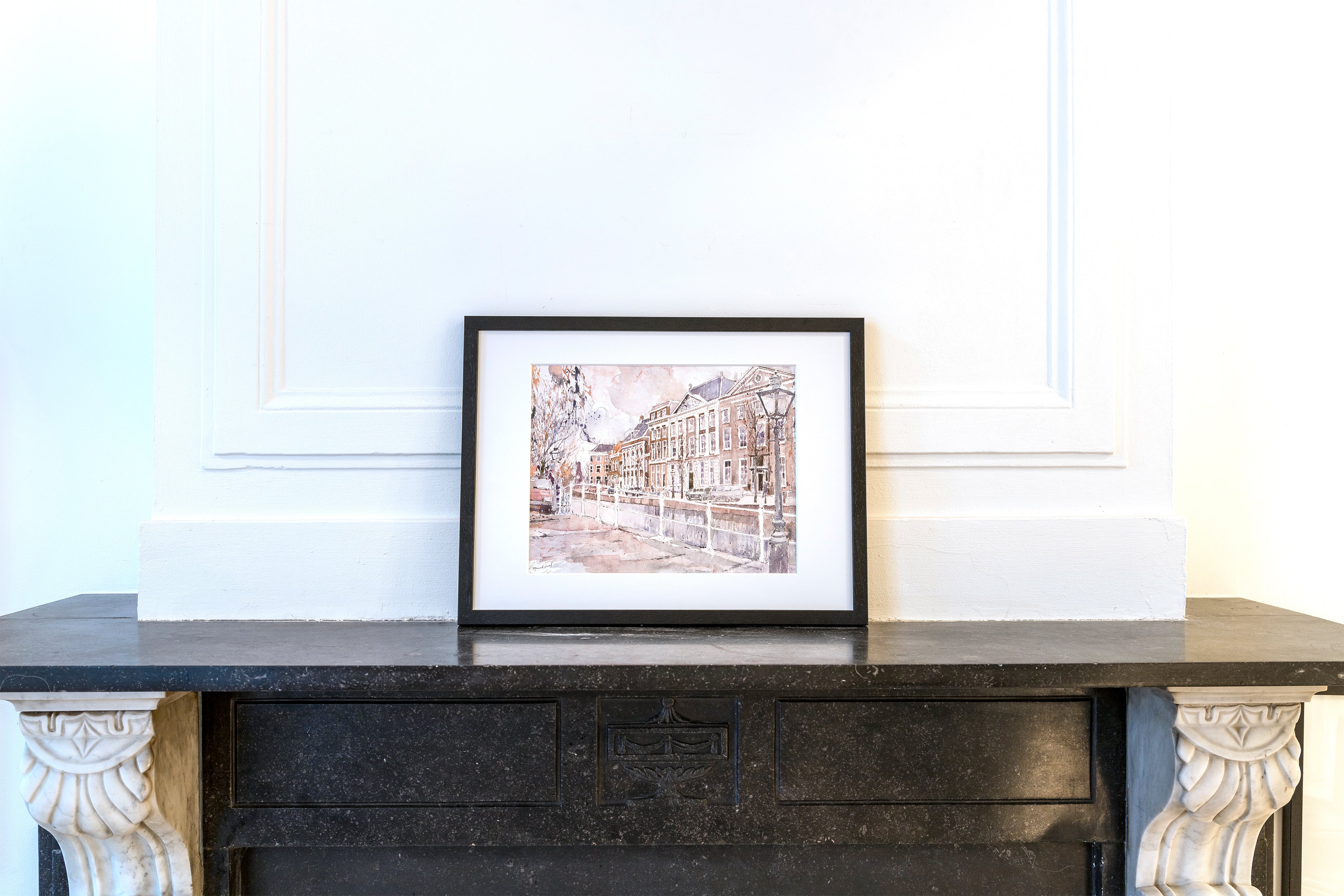 Litho van het Rapenburg in Leiden