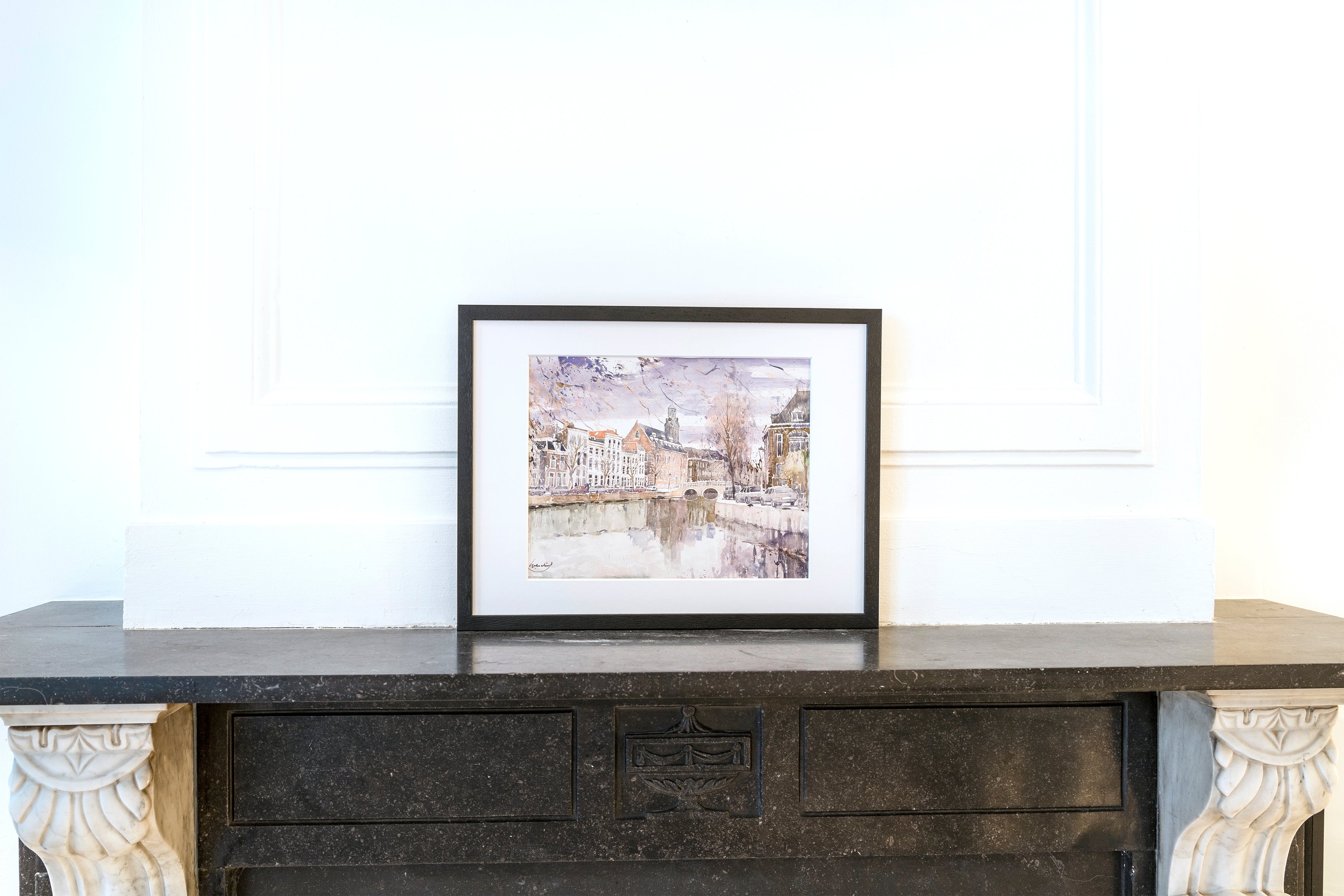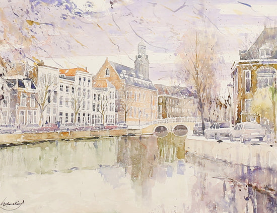 Litho van het Rapenburg in Leiden