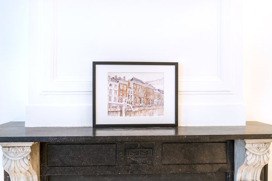 Litho van het Rapenburg in Leiden
