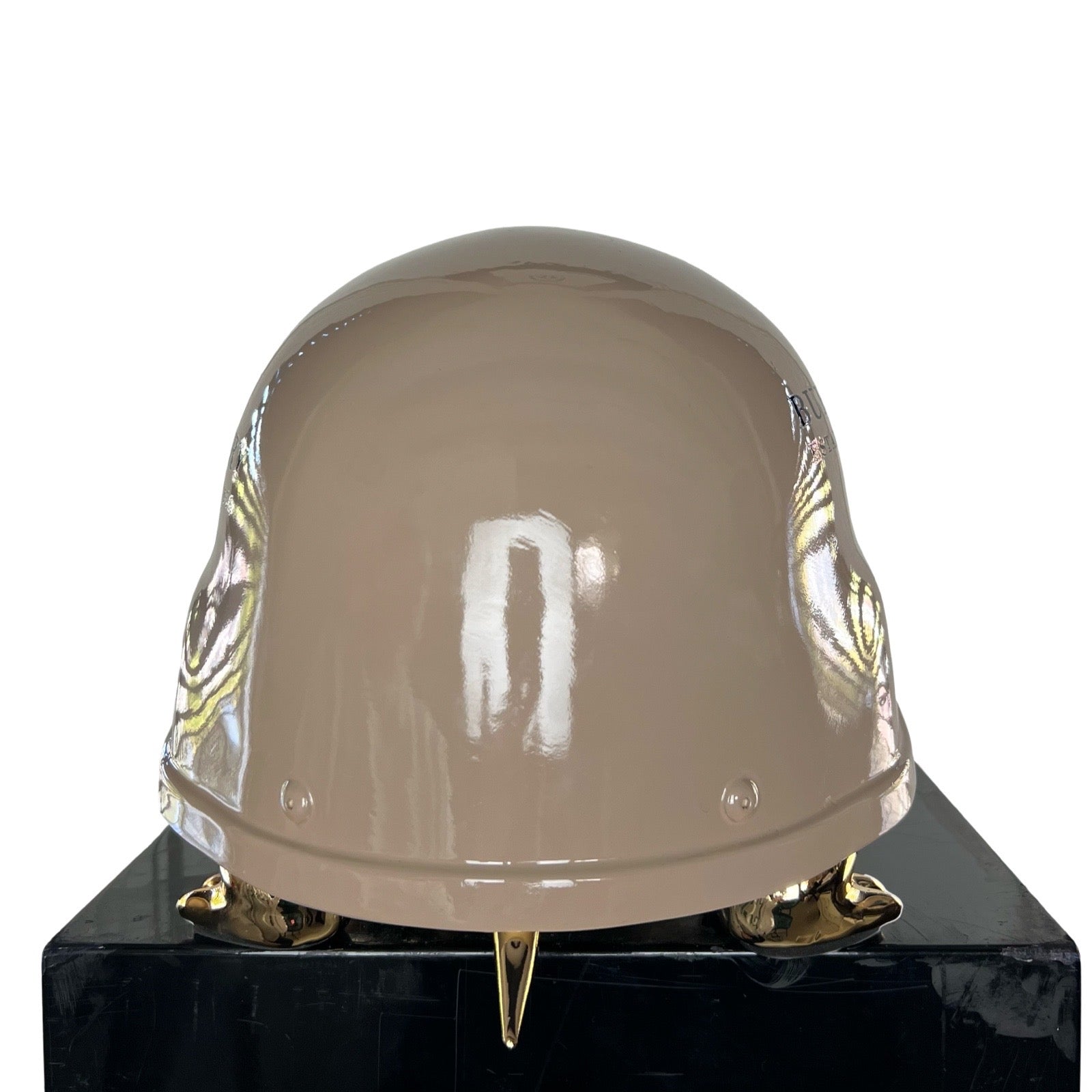 Van Apple created the Peace Turtles on his own artistic way. He gave the turtles a helmet instead of their shell, to show his love and respect for these protected species. The turtles are created in gold to express their value and are given a colorful and contemporary helmet, each design makes a statement.