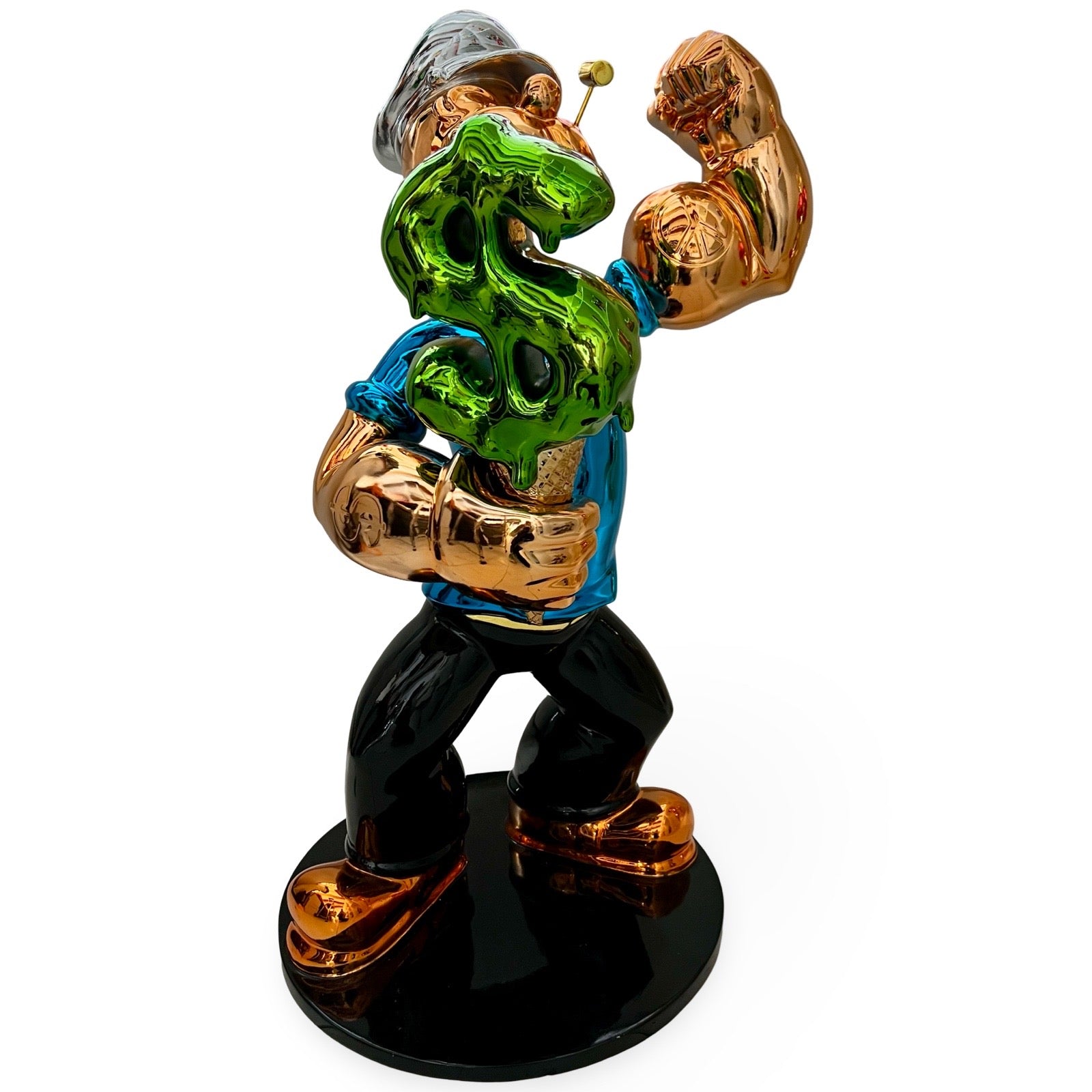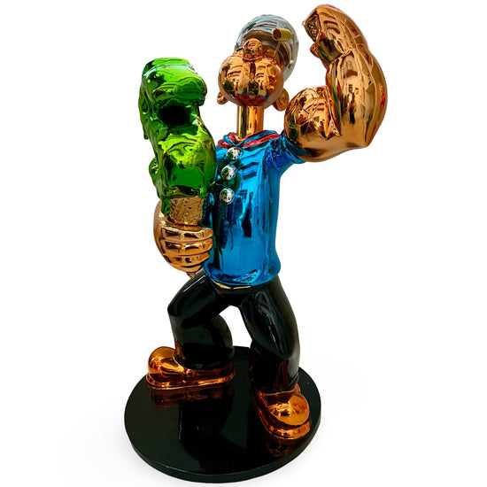 Van Apple created the Popeye on his own artistic way. It is handmade of Chrome with Resin, 80 cm high and hand-signed by the artist.