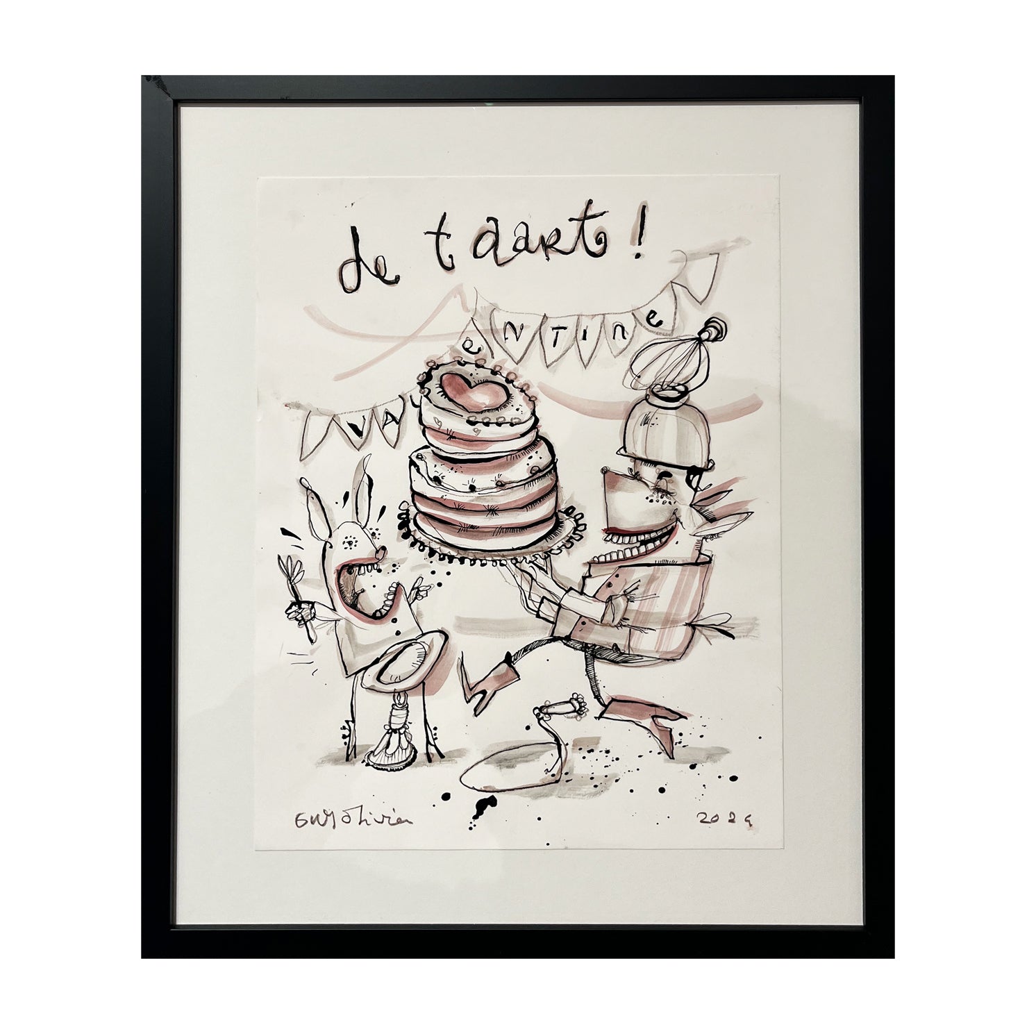 Een schitterend origineel kunstwerk van de kunstenaar Guy Olivier in zwarte lijst met museumglas.