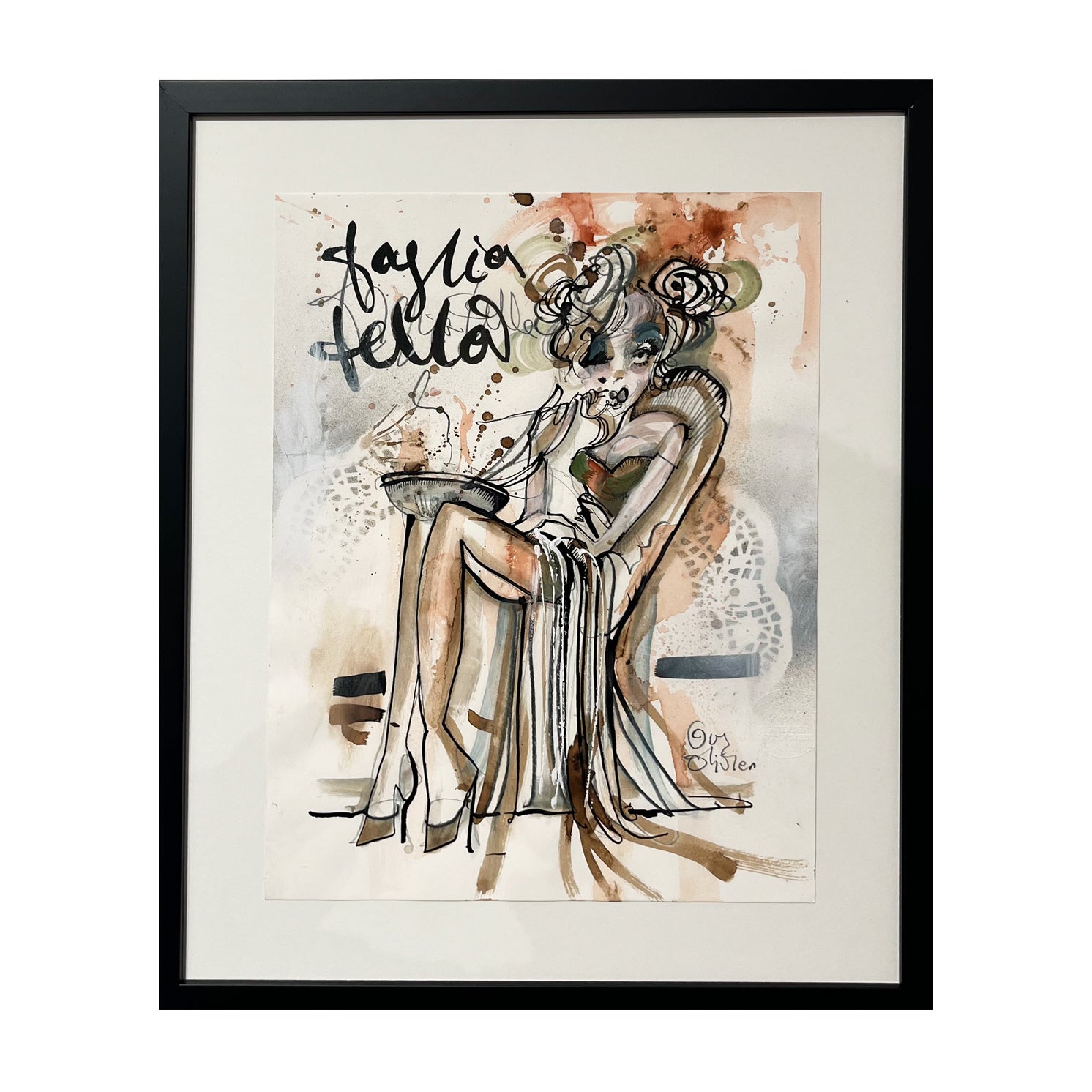 Een schitterend origineel kunstwerk van de kunstenaar Guy Olivier in zwarte lijst met museumglas.
