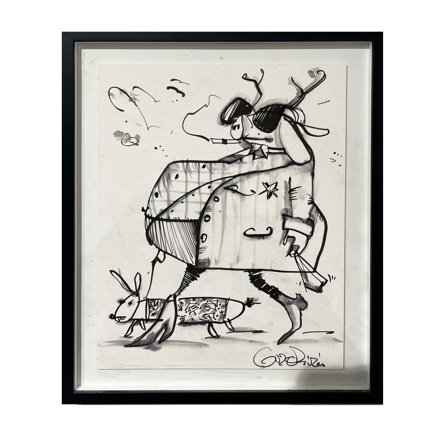 Geweldige tekening op papier van Guy Olivier, inclusief zwarte lijst.