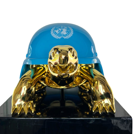 'UN Army Helmet' is an exclusive creation of the serie Golden Peace Turtles by artist Van Apple.
