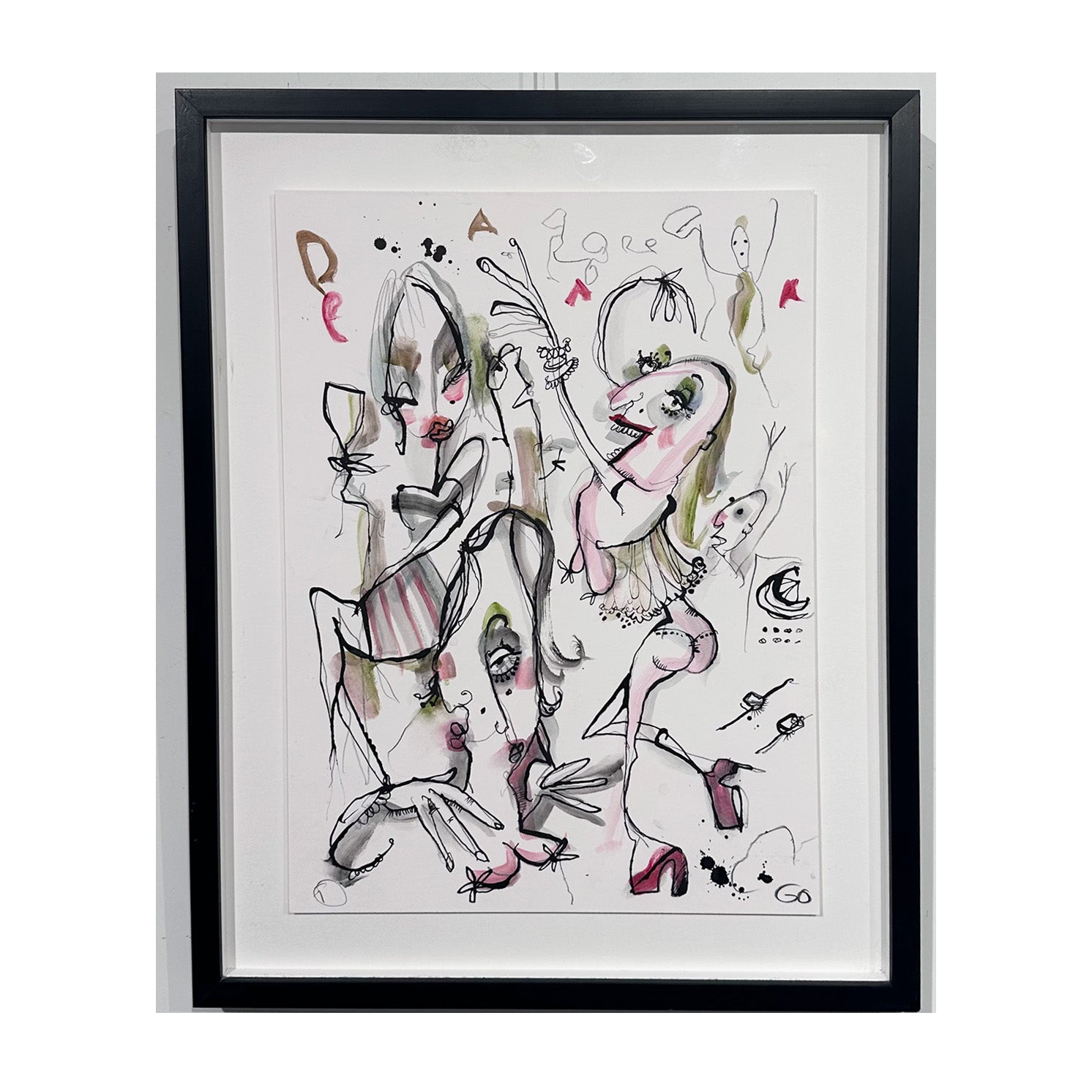 Geweldige tekening op papier van Guy Olivier, inclusief zwarte lijst.